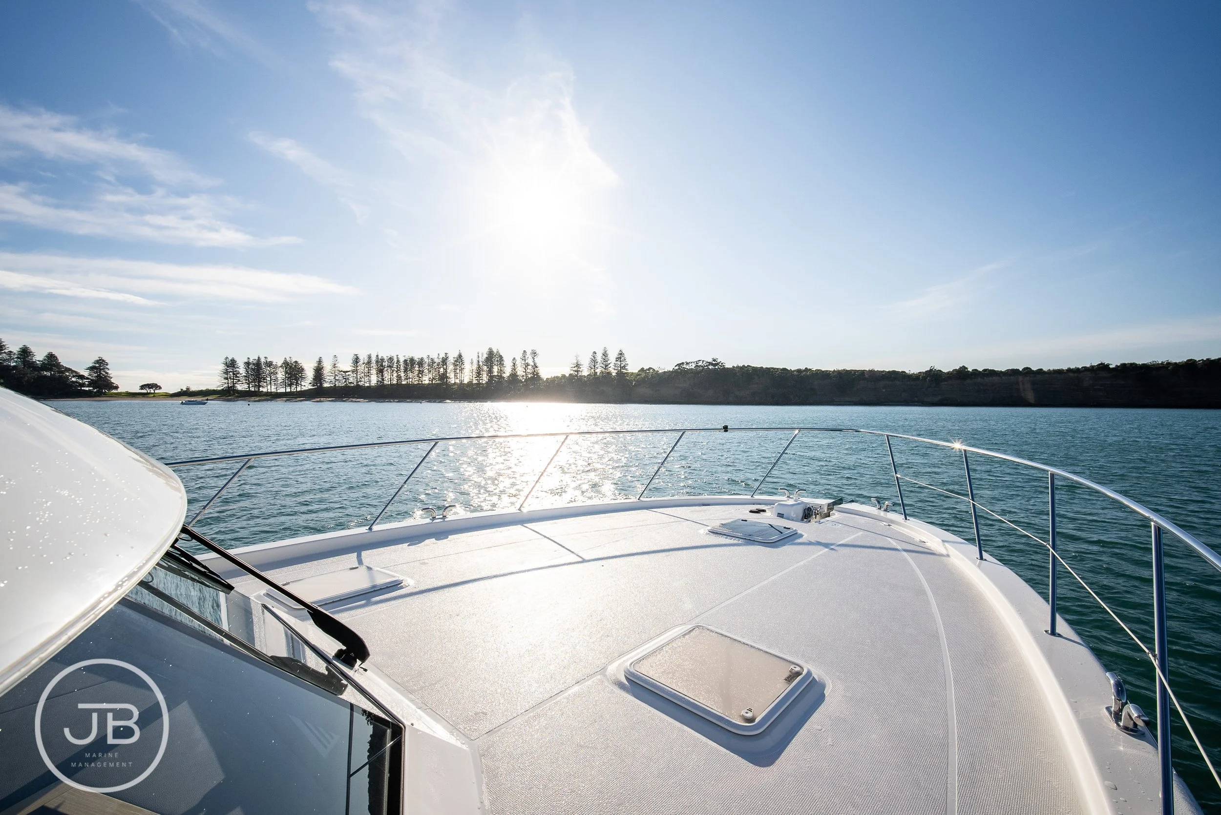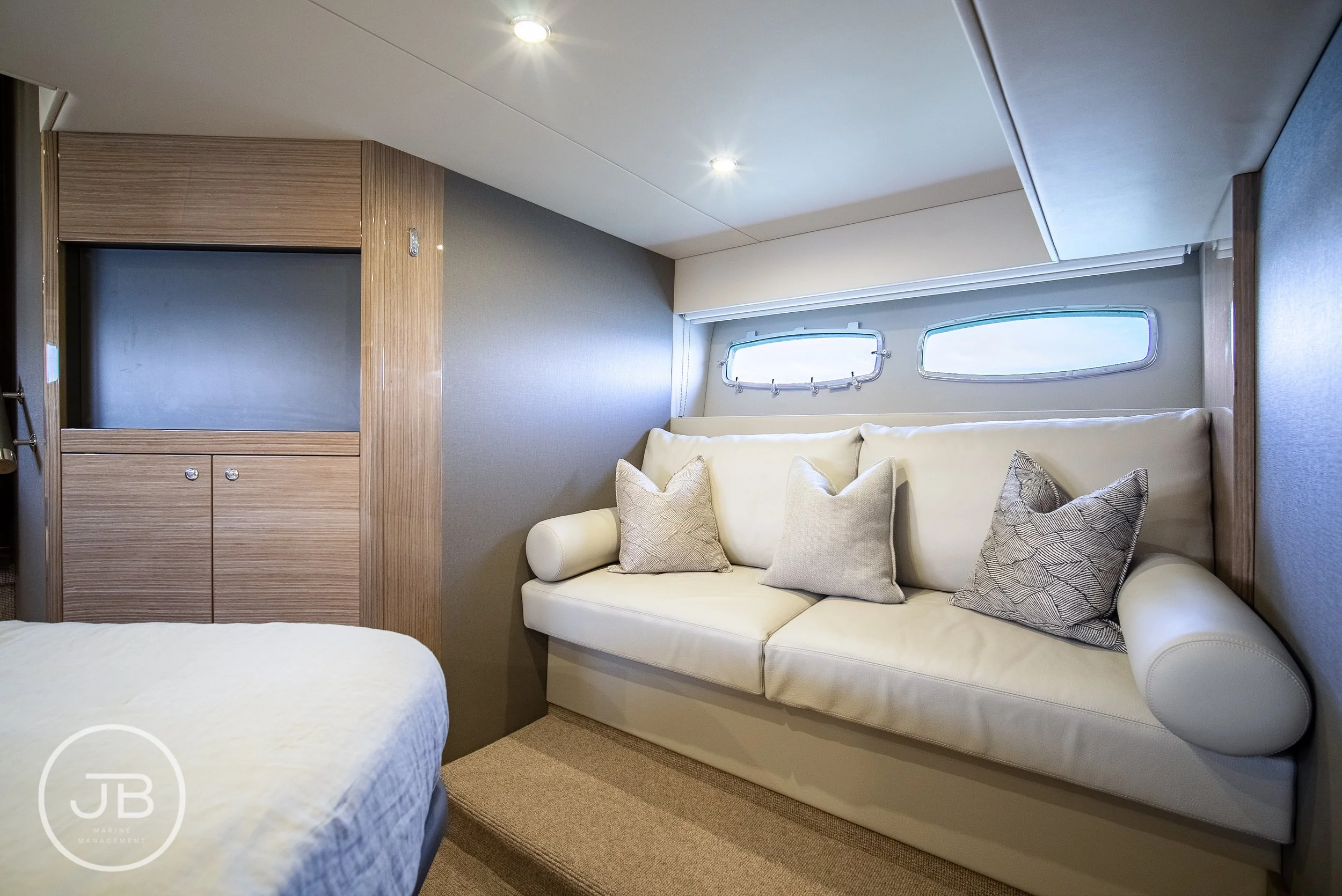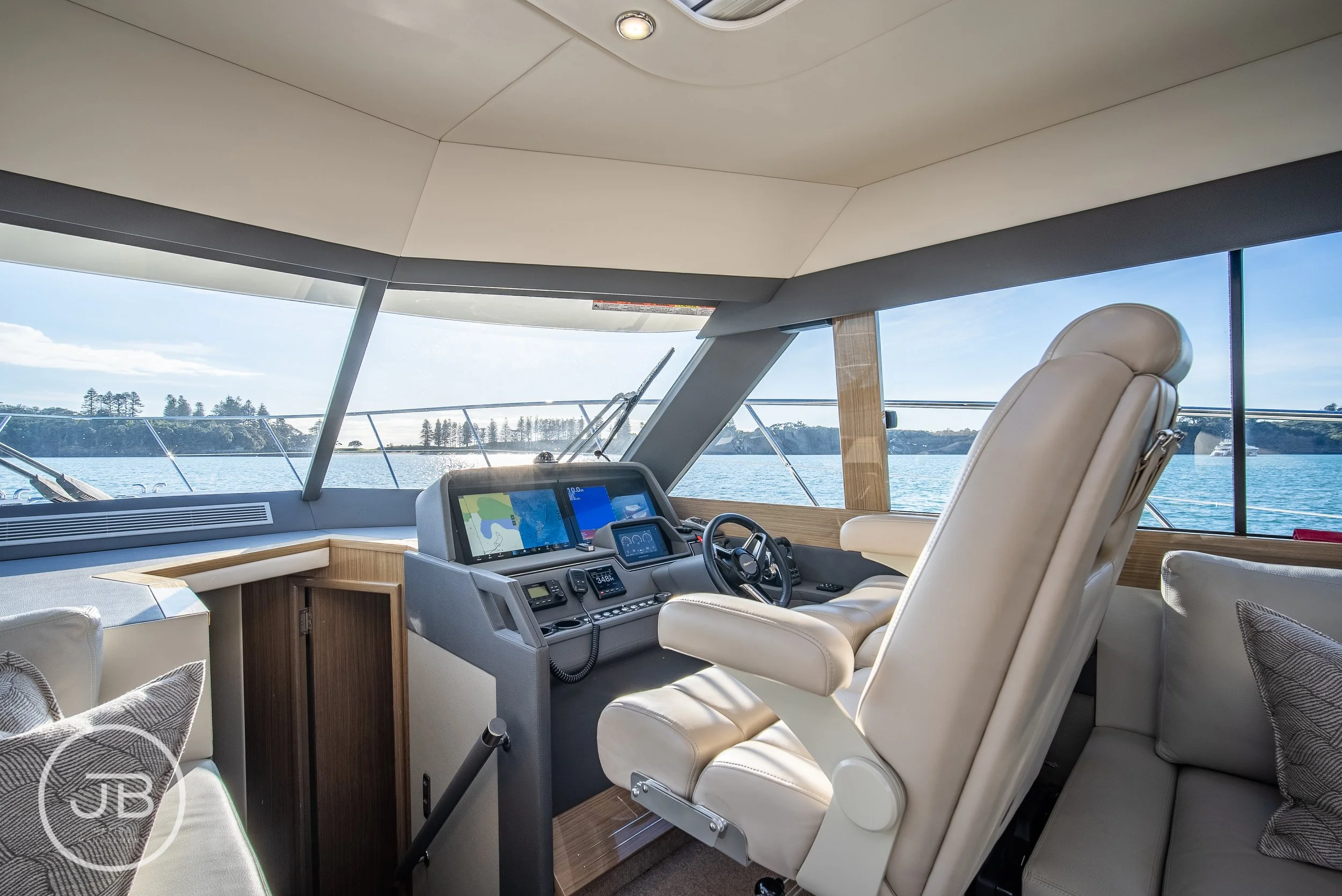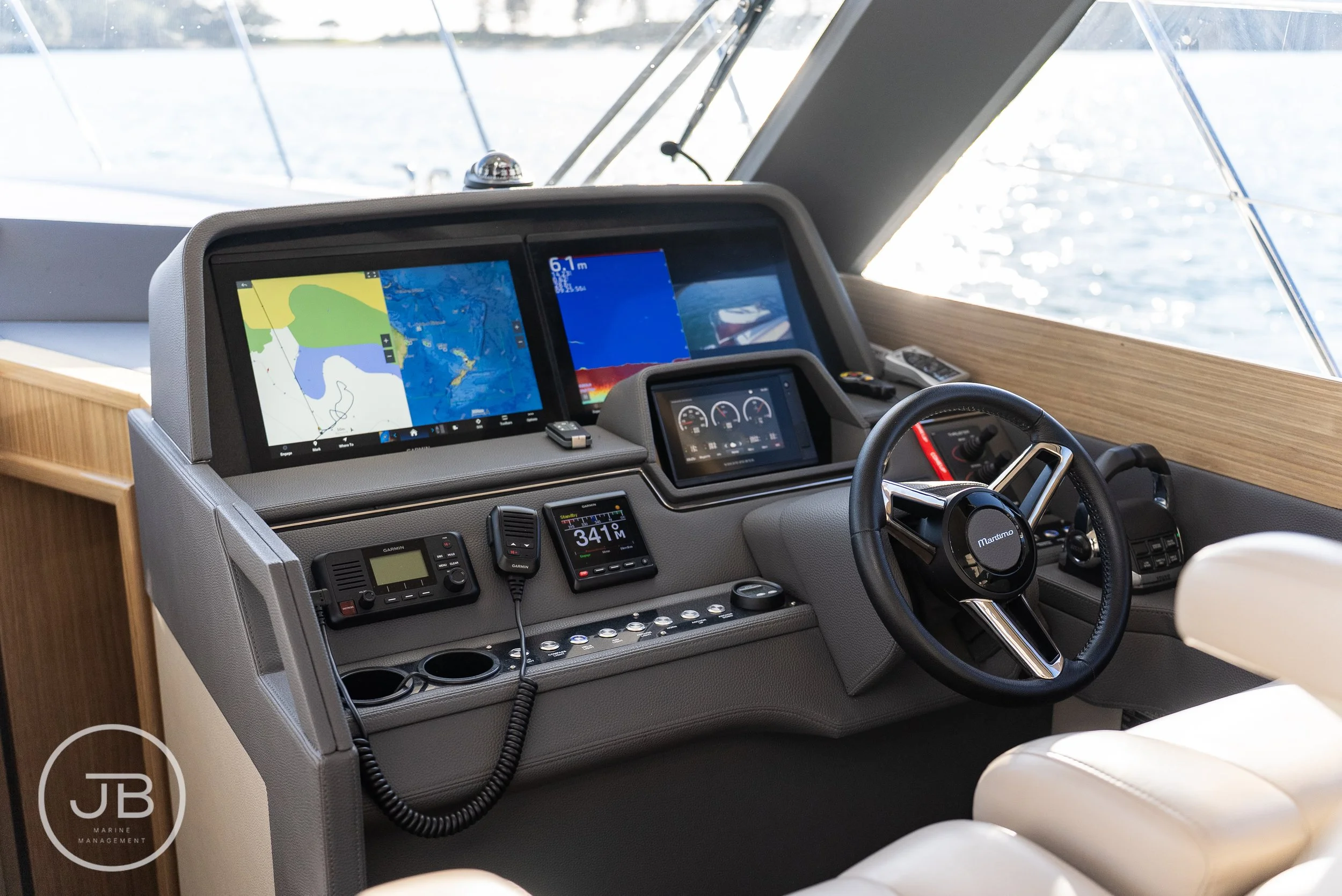 For effortless docking and maneuvering, this vessel also features a Yacht Controller, allowing remote control of the engines and thrusters—ideal for short-handed or solo handling. She has been meticulously maintained, with a full engine service completed in April 2025, including heat exchanger and full saltwater system service, and further care in July 2025 with antifoul, Propspeed, and a full polish.