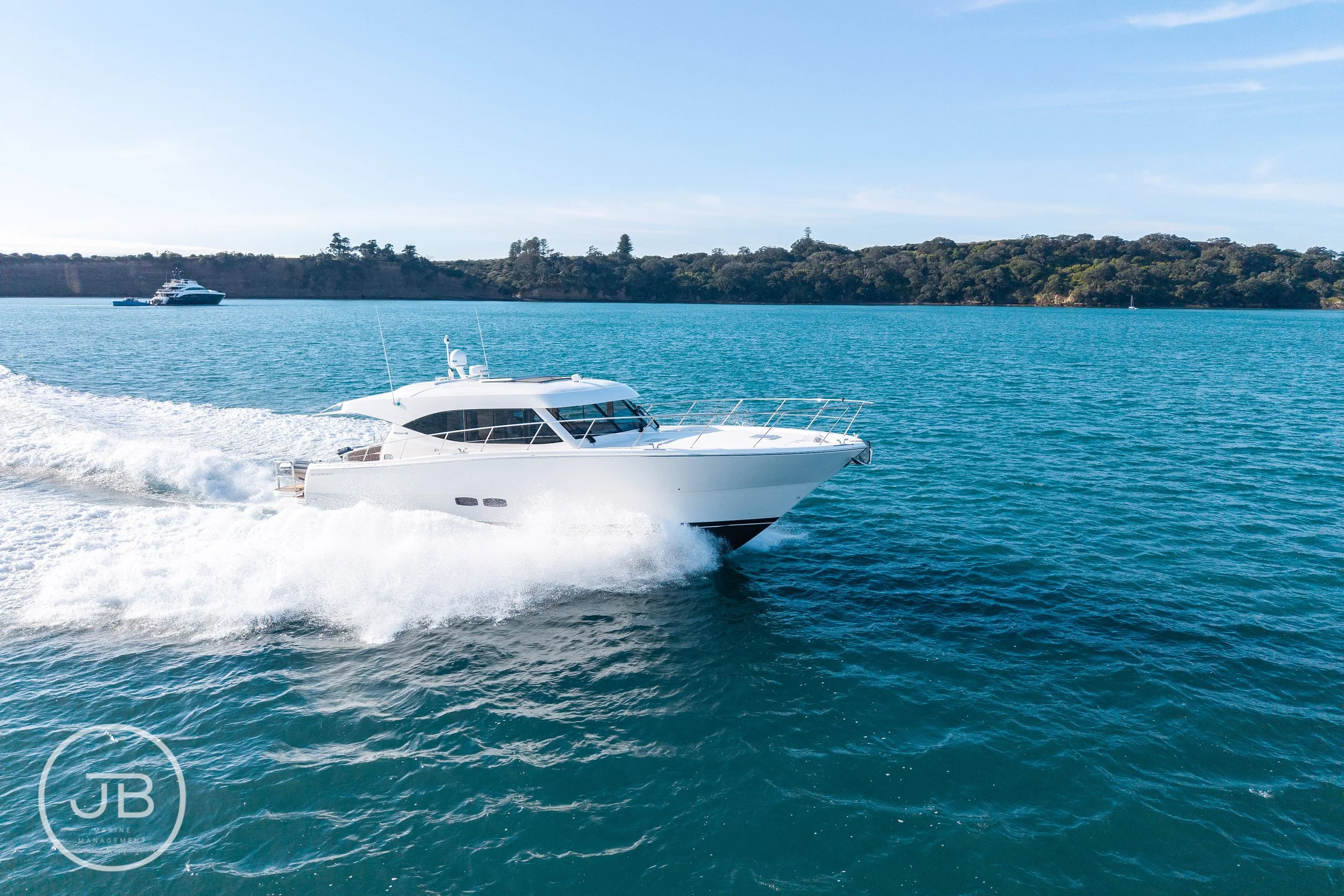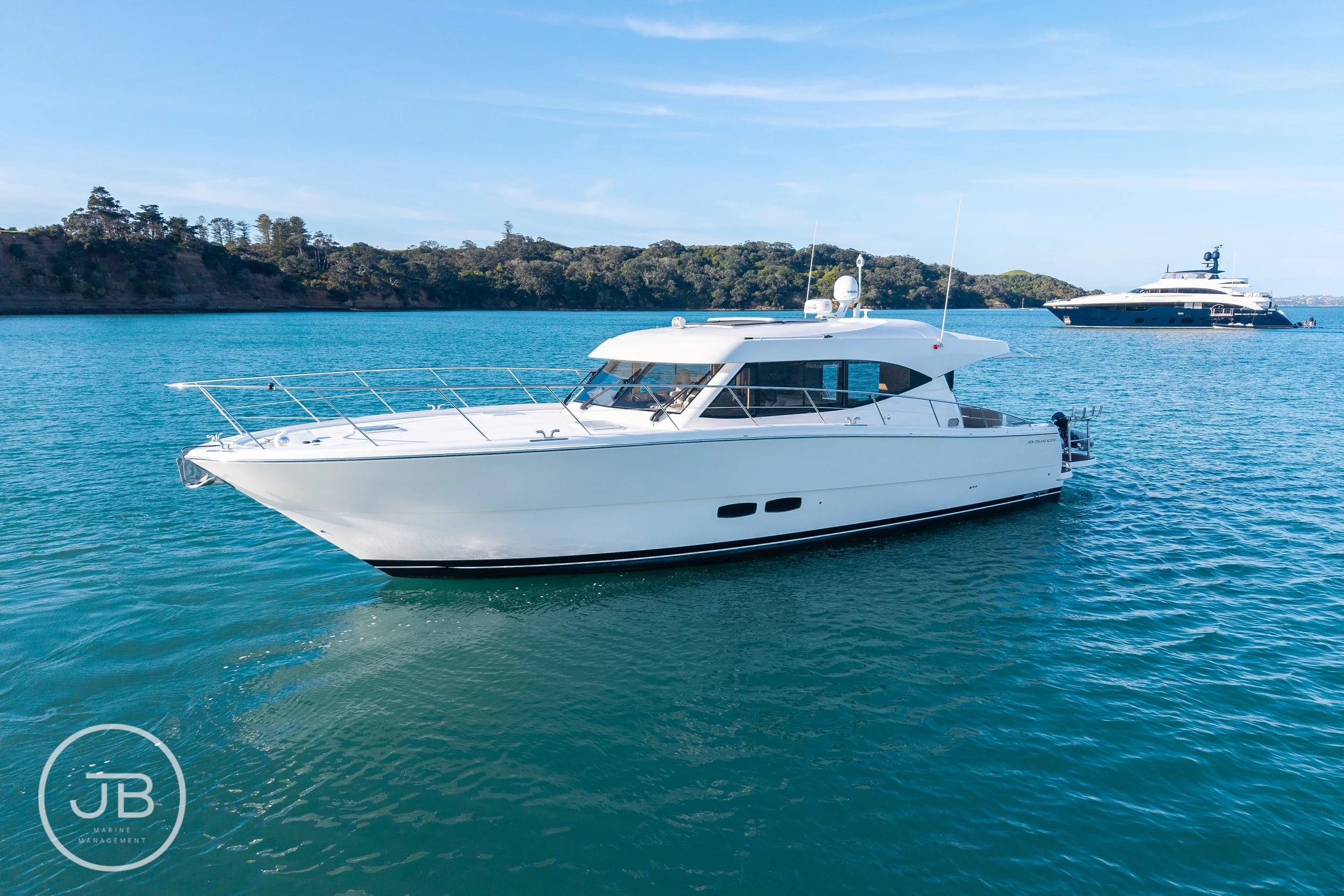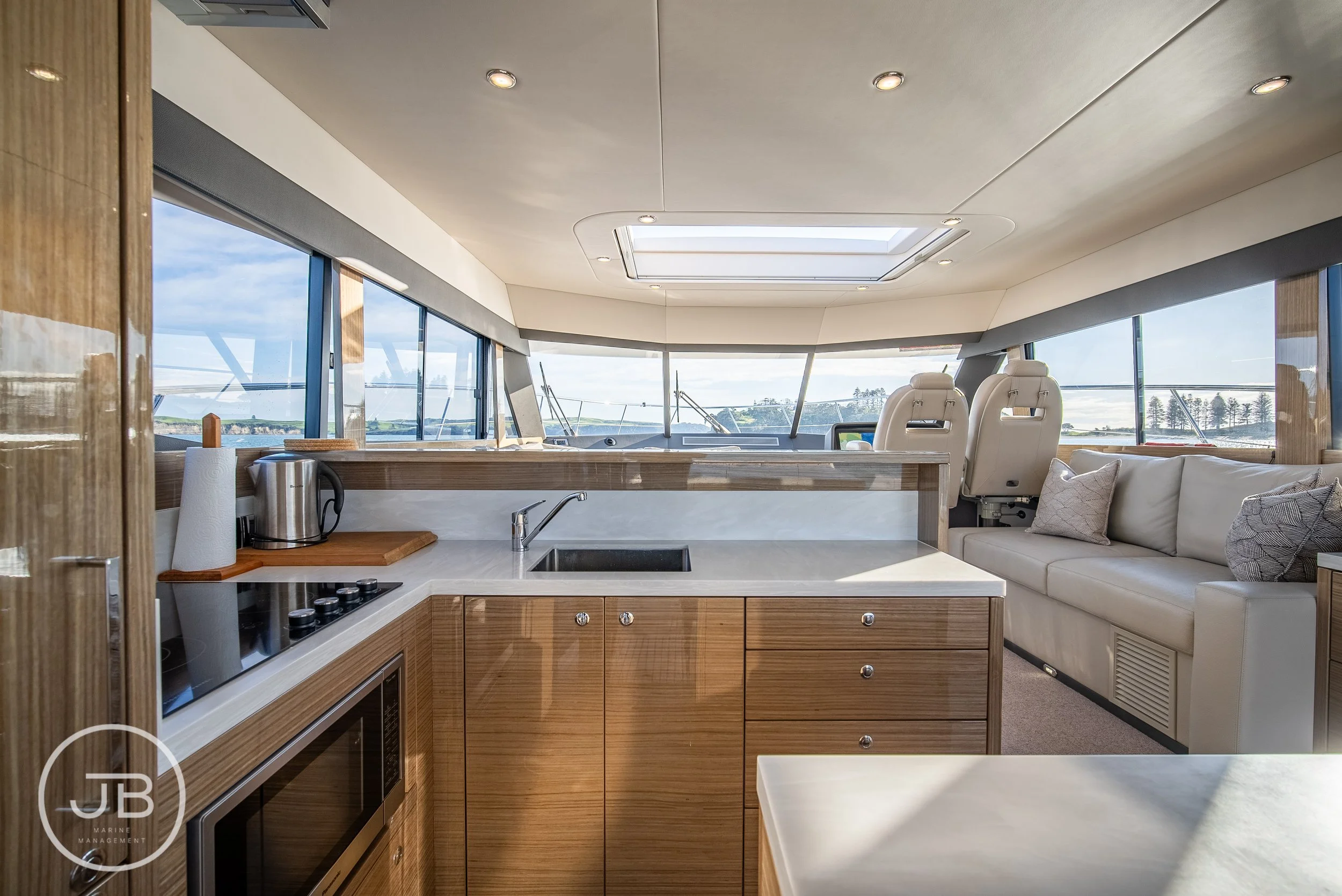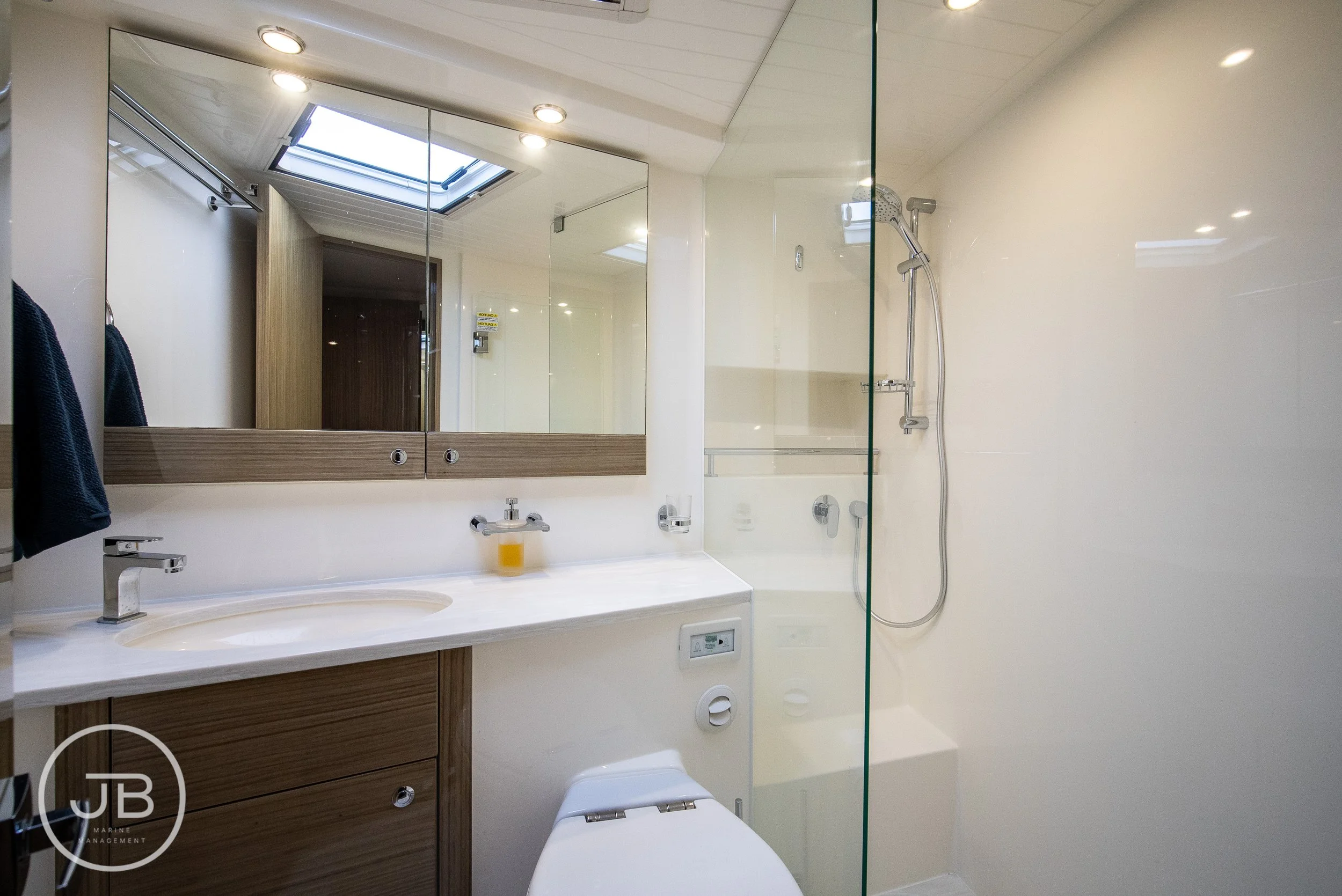 For effortless docking and maneuvering, this vessel also features a Yacht Controller, allowing remote control of the engines and thrusters—ideal for short-handed or solo handling. She has been meticulously maintained, with a full engine service completed in April 2025, including heat exchanger and full saltwater system service, and further care in July 2025 with antifoul, Propspeed, and a full polish.