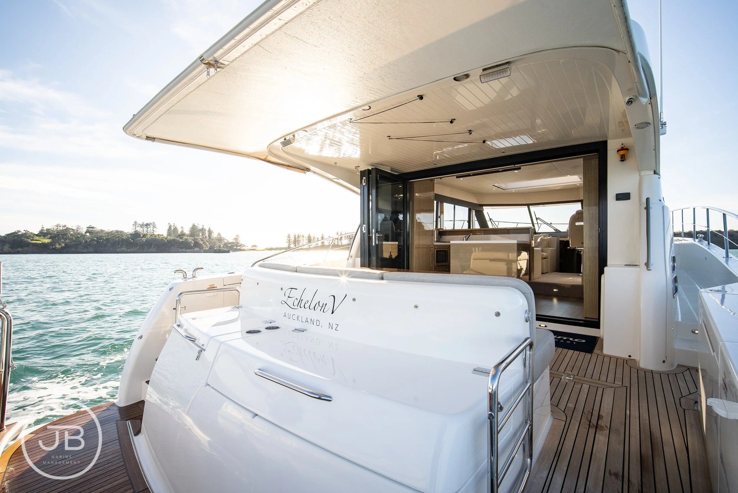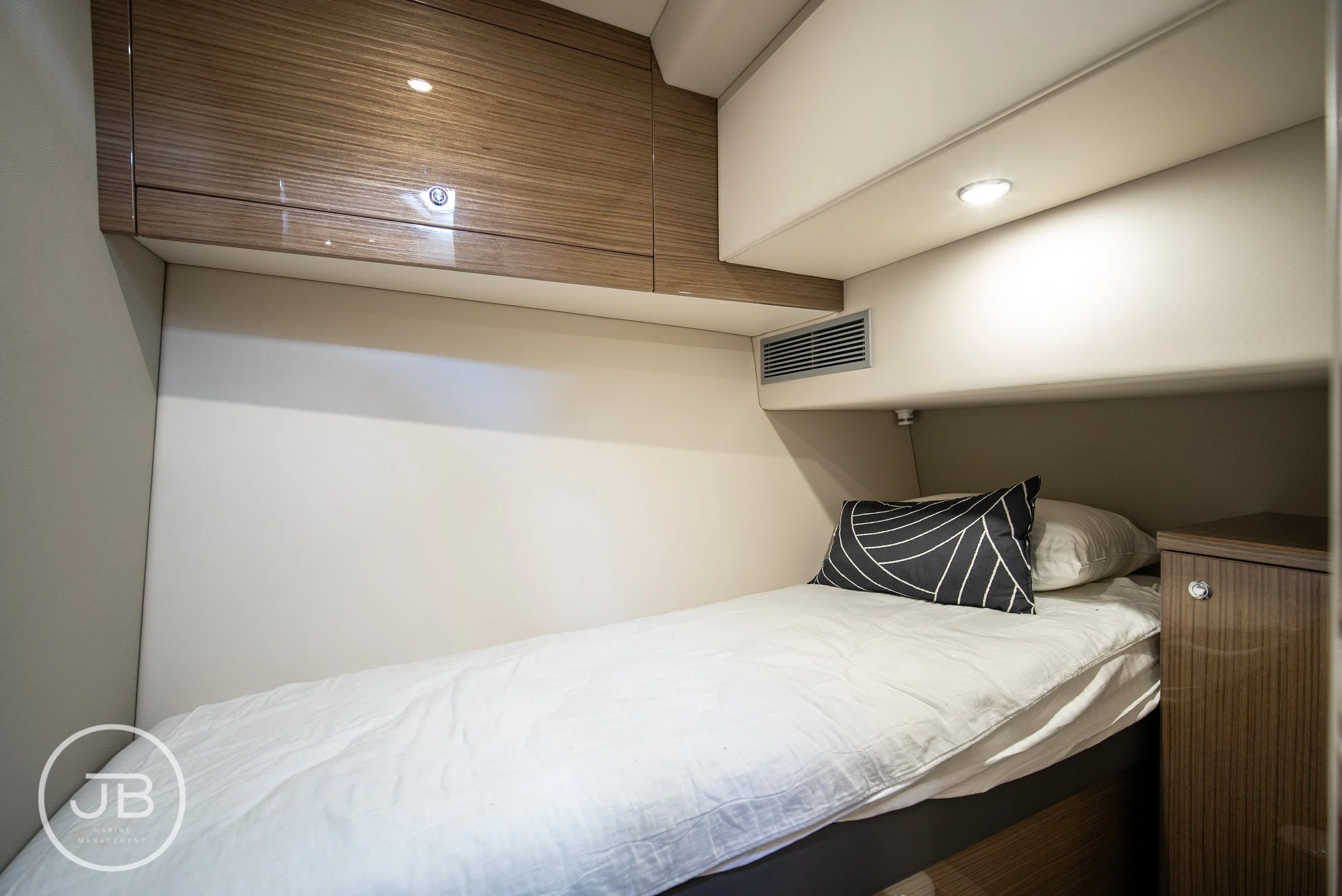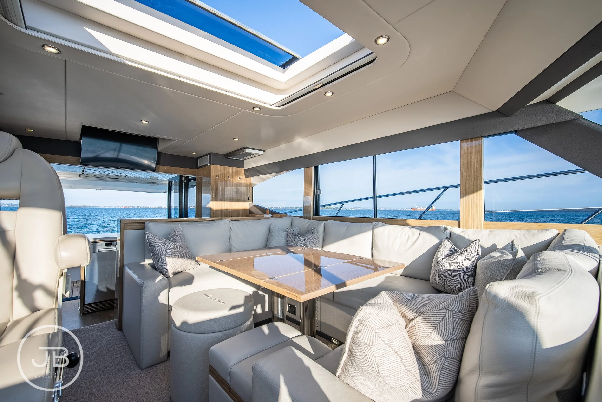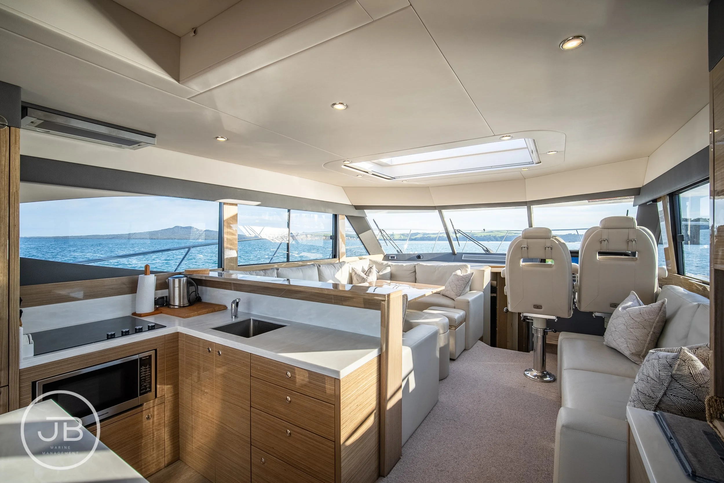 For effortless docking and maneuvering, this vessel also features a Yacht Controller, allowing remote control of the engines and thrusters—ideal for short-handed or solo handling. She has been meticulously maintained, with a full engine service completed in April 2025, including heat exchanger and full saltwater system service, and further care in July 2025 with antifoul, Propspeed, and a full polish.