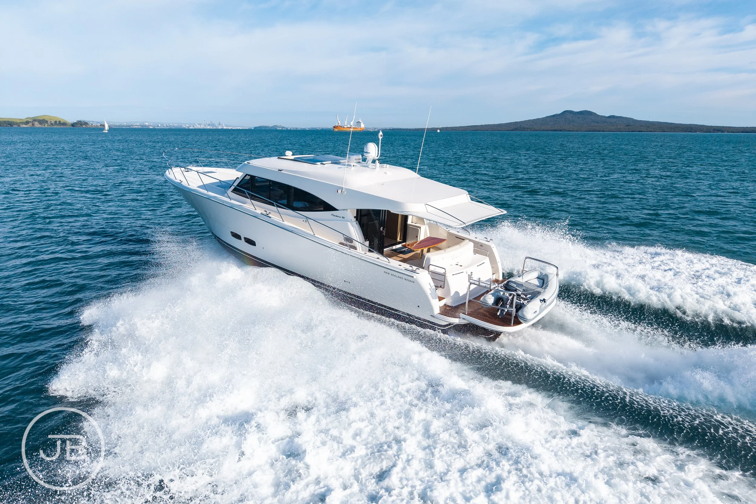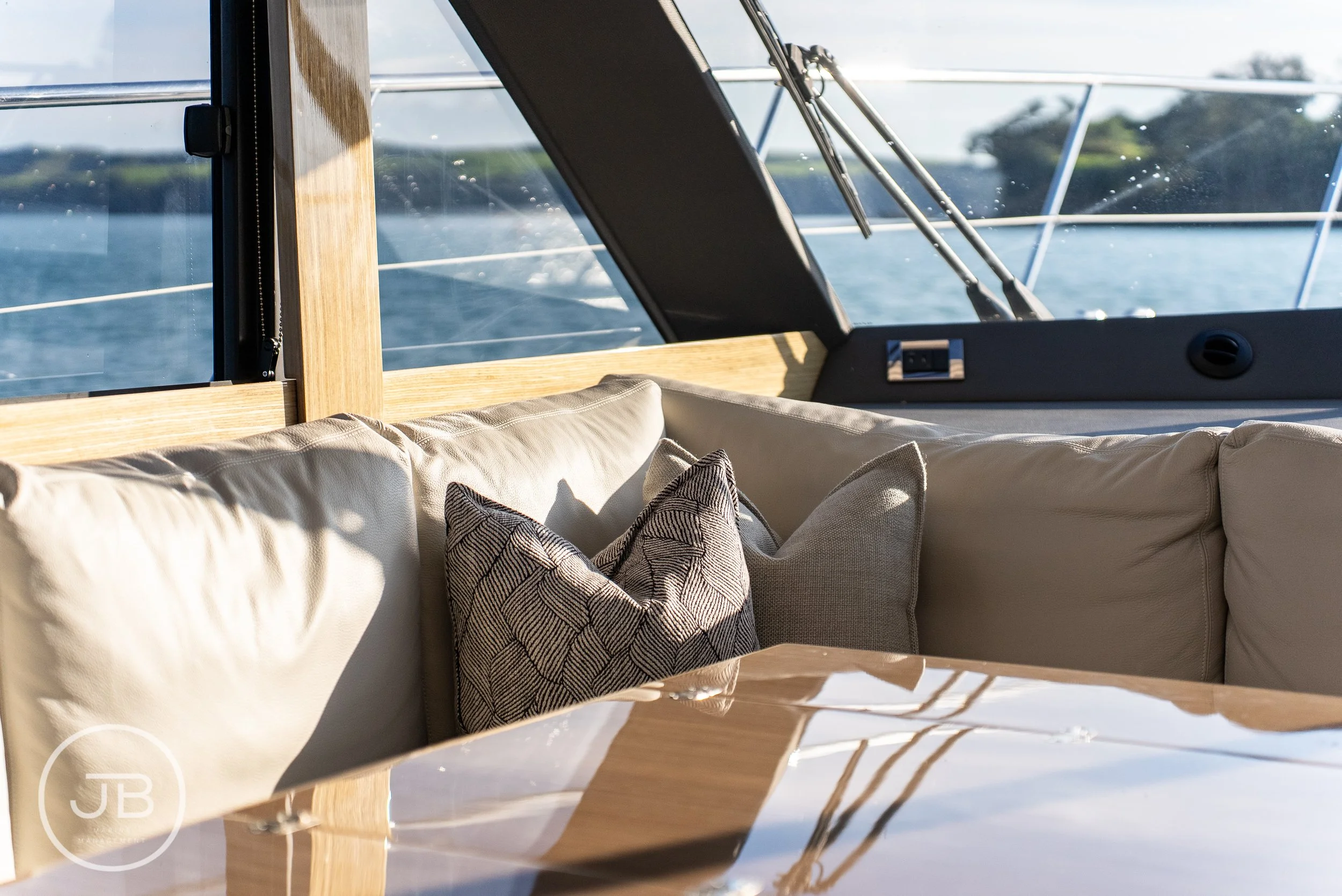 Powered by upgraded twin Volvo D11 725hp diesel engines, the S51 delivers confident performance and excellent fuel efficiency—thanks to her shaft-drive system and Maritimo’s efficent hull design.