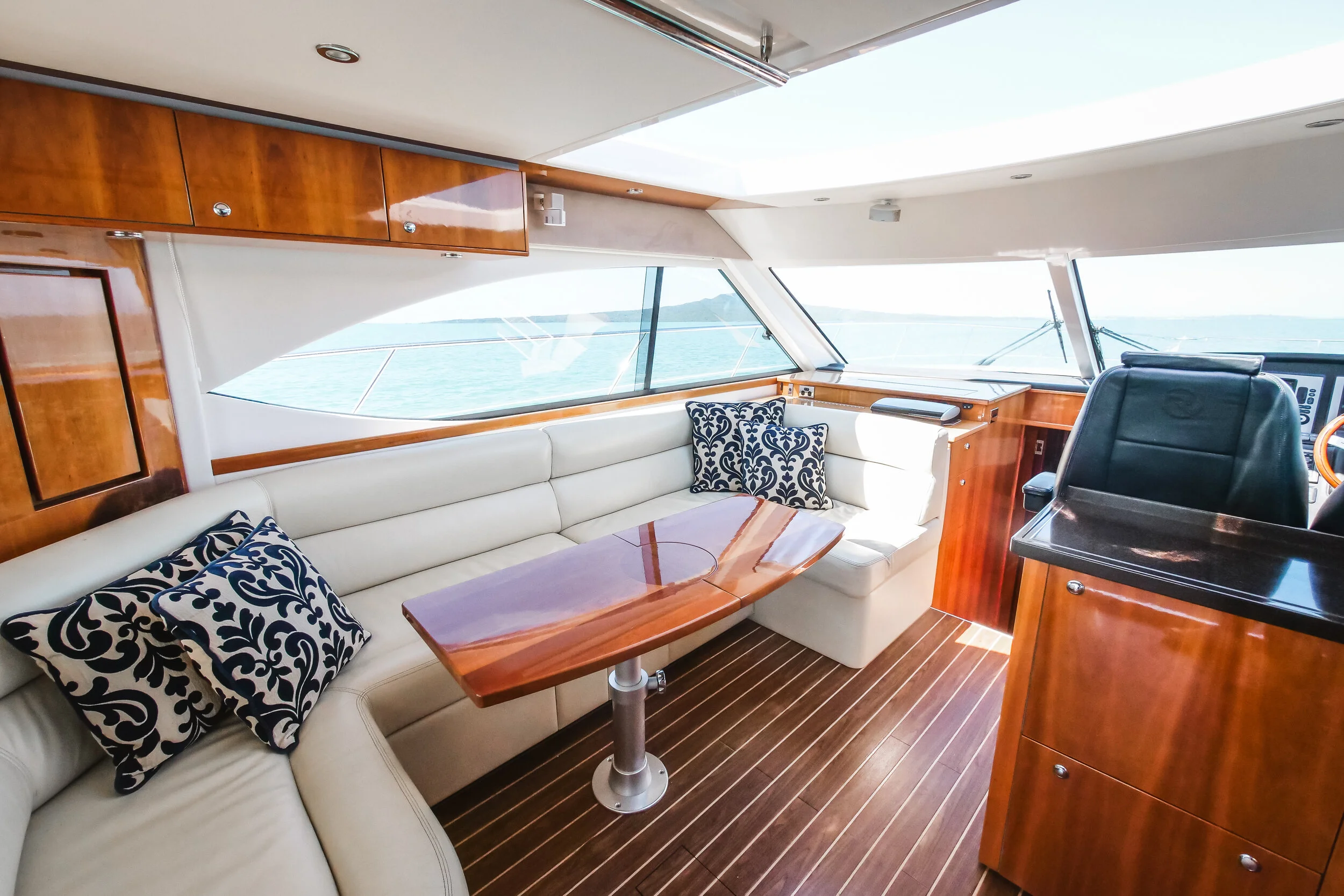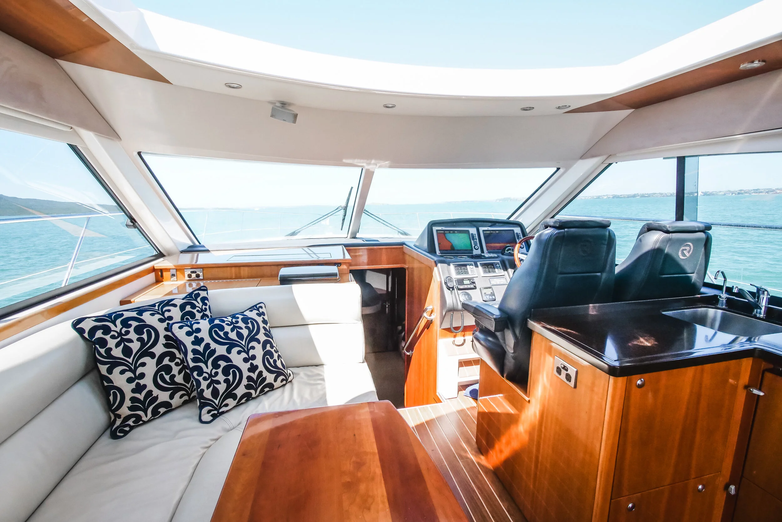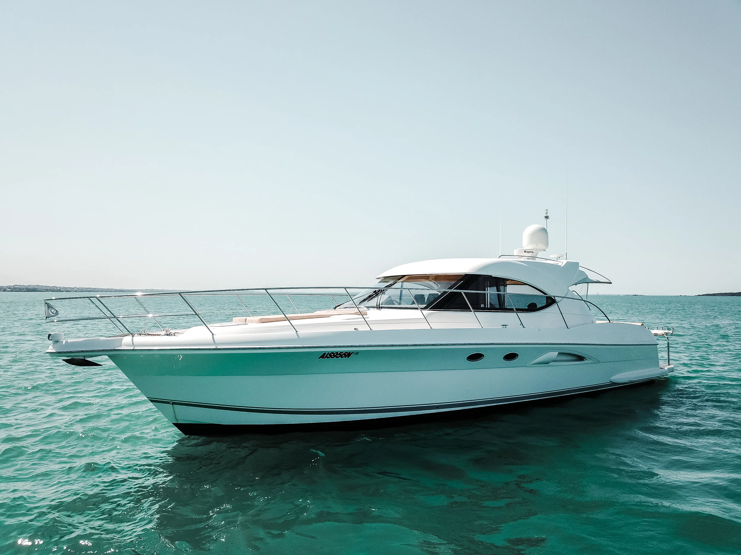 This absolutely stunning Riviera 5000 is a striking sports yacht which is well equipped for extensive cruising with family and friends. Being powered by the Twin Cummins Zeus pods providing excellent fuel economy. She boasts features such as a hydraulic swim platform, Sun roof and doors and window that completely open to create an un match able indoor outdoor flow from the aft seating area straight into the galley and saloon settee meaning the skipper is engaged with all the happenings.. It really doesn’t get much better than this!