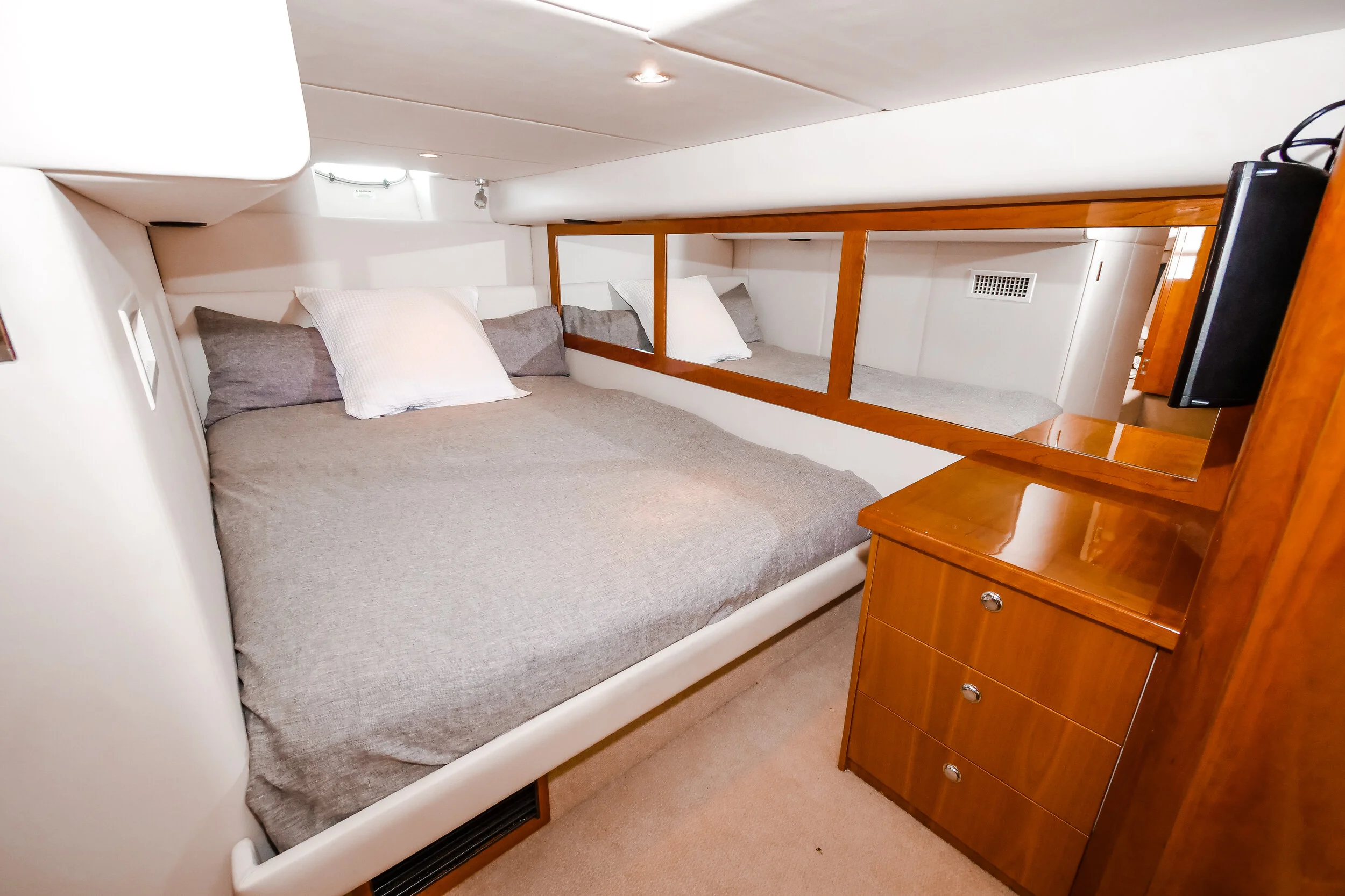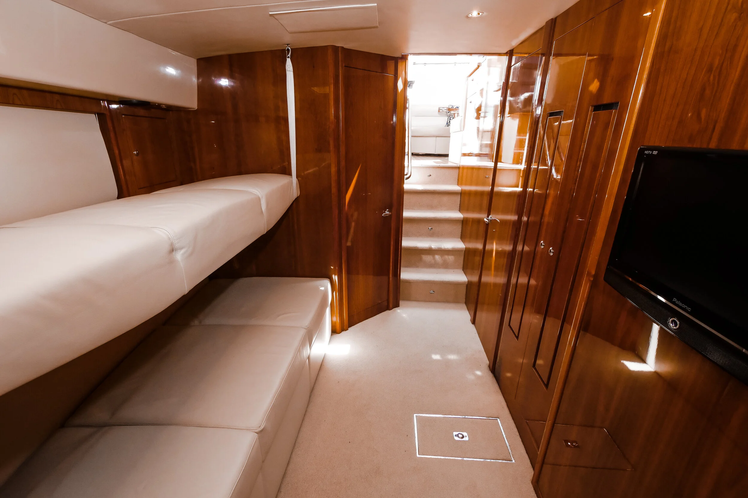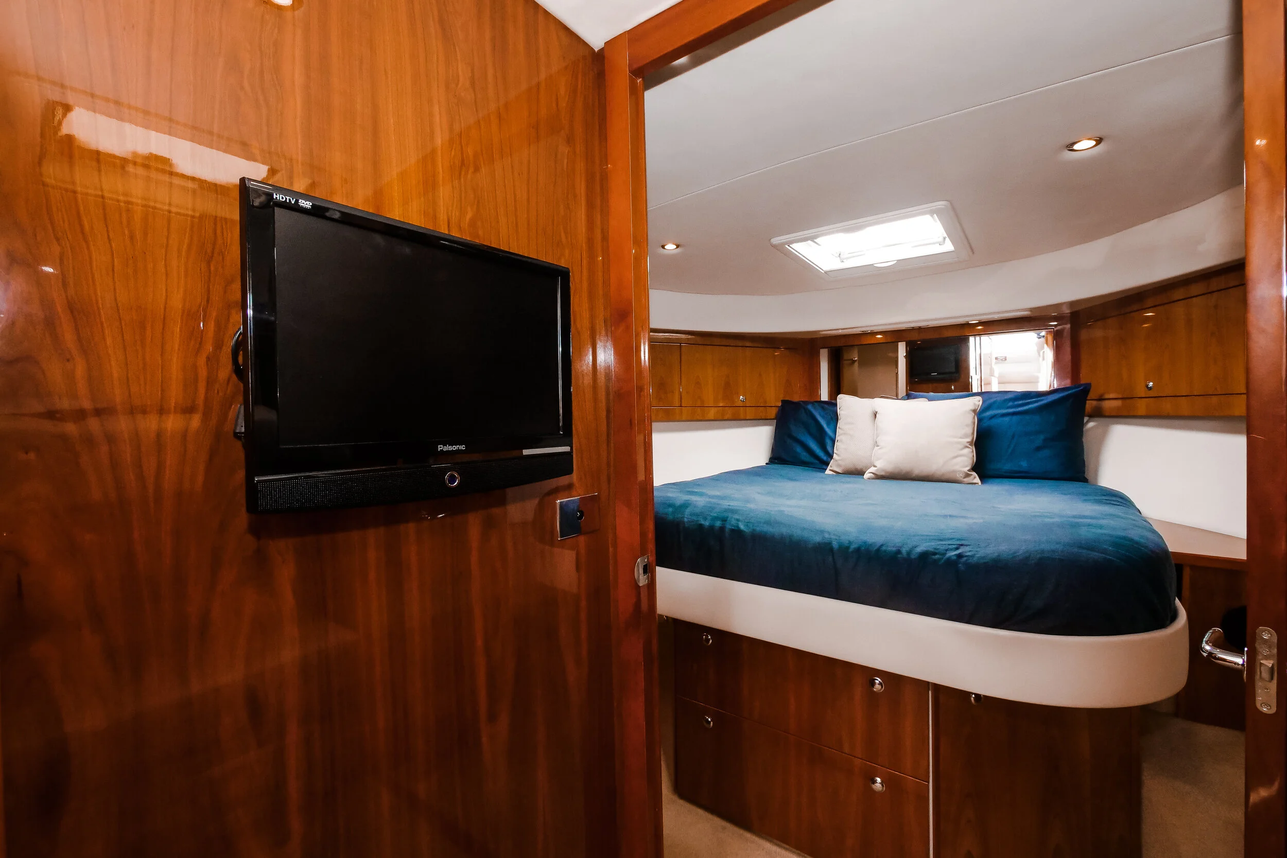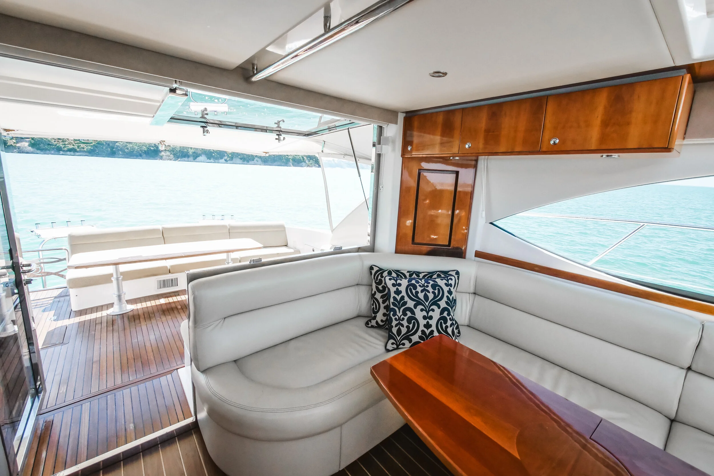 This absolutely stunning Riviera 5000 is a striking sports yacht which is well equipped for extensive cruising with family and friends. Being powered by the Twin Cummins Zeus pods providing excellent fuel economy. She boasts features such as a hydraulic swim platform, Sun roof and doors and window that completely open to create an un match able indoor outdoor flow from the aft seating area straight into the galley and saloon settee meaning the skipper is engaged with all the happenings.. It really doesn’t get much better than this!