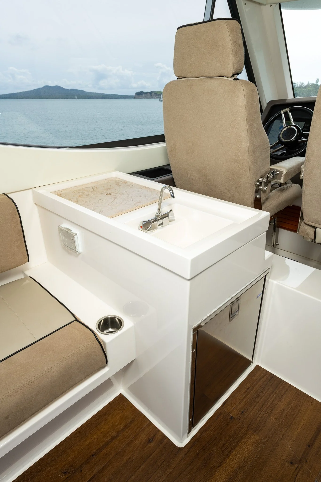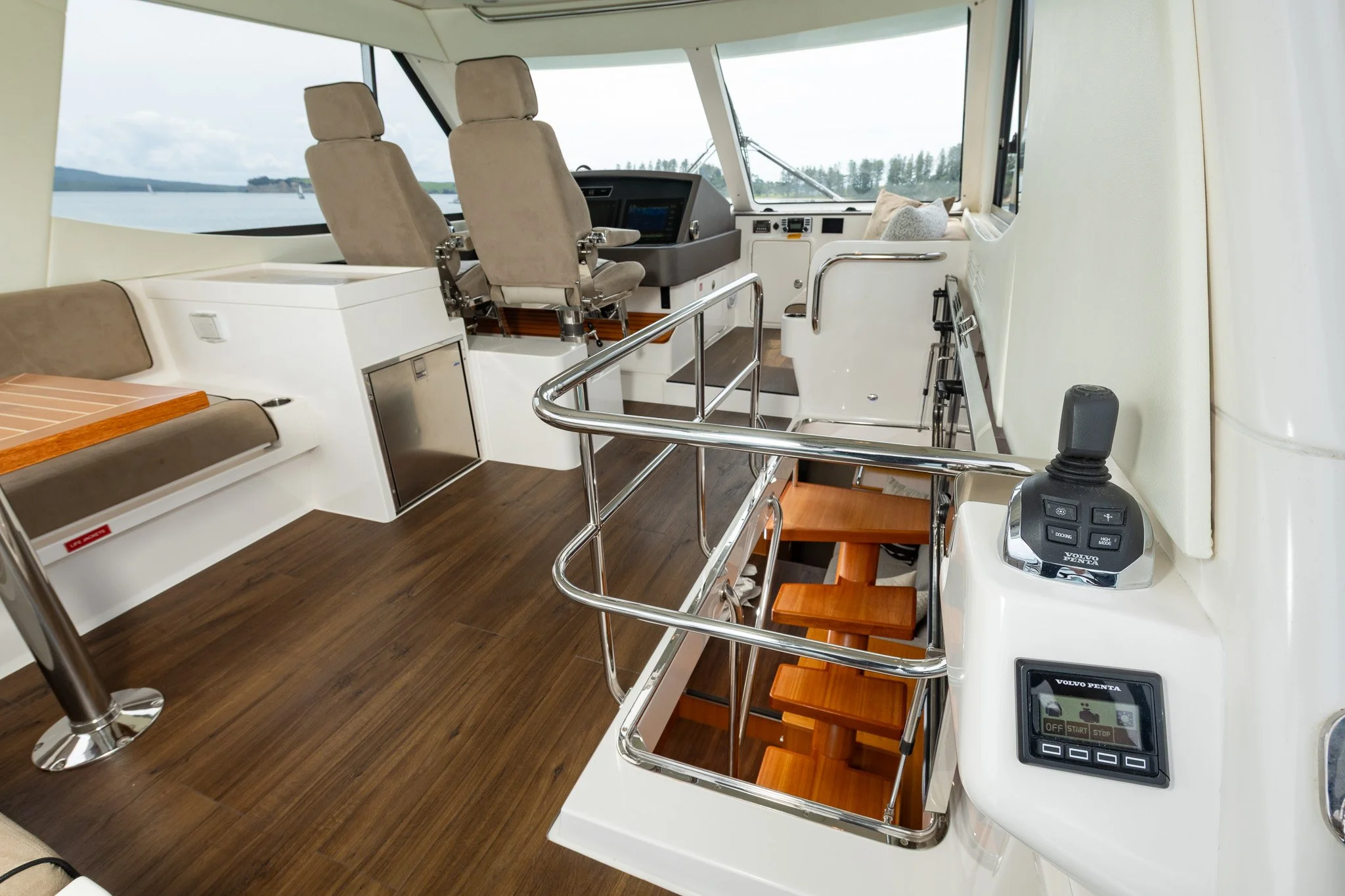 Powered by twin Volvo Penta IPS pod drives, she provides smooth, efficient cruising with exceptional manoeuvrability and effortless joystick docking.