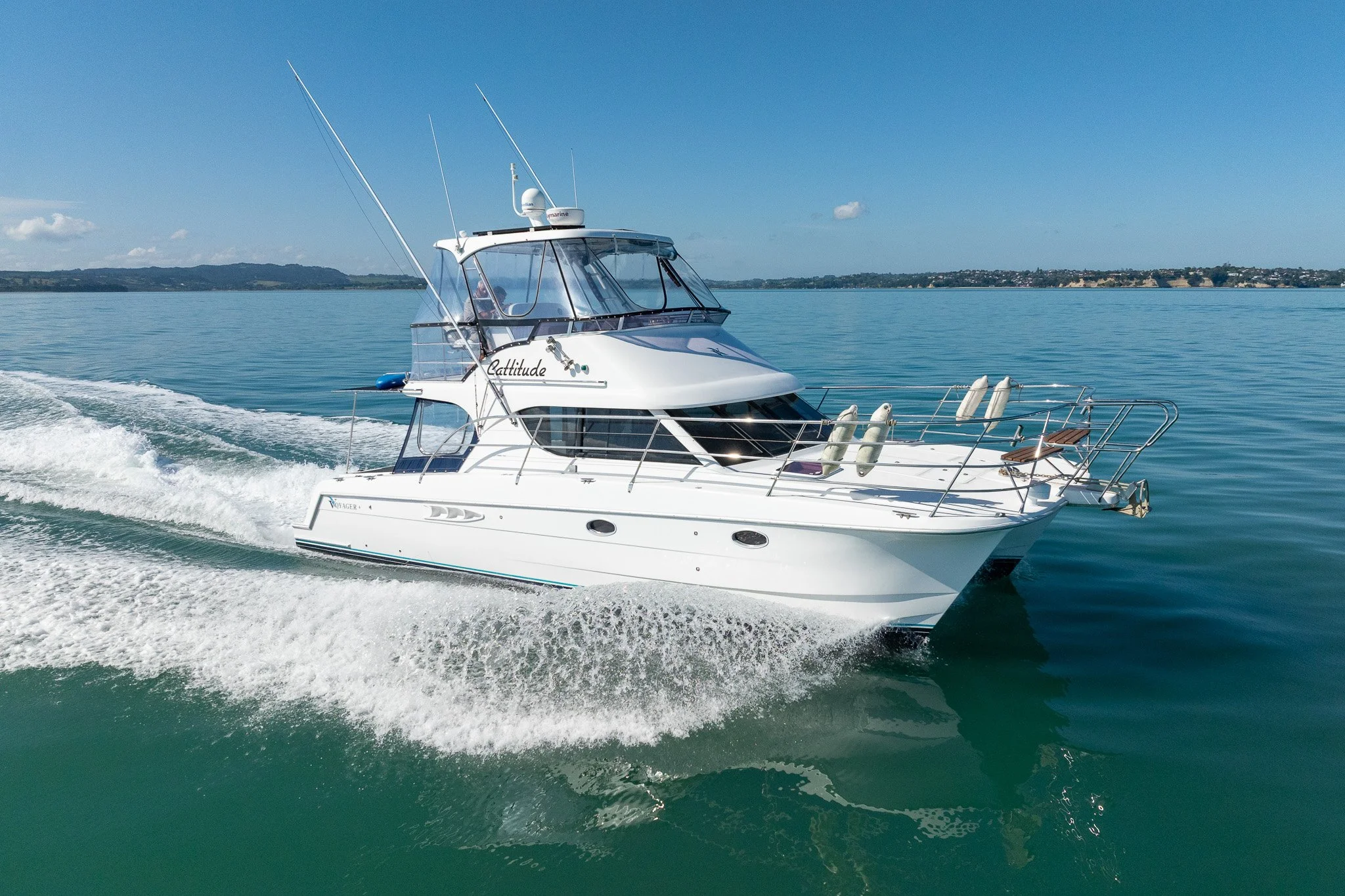 This 2007 V1100 presents an outstanding opportunity to secure a well-maintained and highly capable vessel that delivers efficiency, performance and practicality in one impressive package. Powered by reliable shaft drive twin Steyr diesel engines, she cruises comfortably at 16 knots while burning just 42 litres per hour, offering exceptional economy for a vessel of this size. Whether you’re covering distance or enjoying relaxed coastal cruising, the V1100 provides a smooth, confident and dependable ride. Equipped with Raymarine electronics, the helm is well set up for safe and simple navigation, making offshore runs and harbour manoeuvring equally effortless. Designed to fit a 12-metre berth, she’s an ideal option for owners wanting serious capability without stepping into larger berth requirements. The layout offers generous cockpit space, practical functionality and comfortable accommodation for extended weekends away. Lovingly maintained and thoroughly enjoyed by her current owners, this V1100 has been well cared for and presents in excellent condition, ready for her next chapter on the water. A smart, economical and versatile cruiser that ticks all the right boxes.