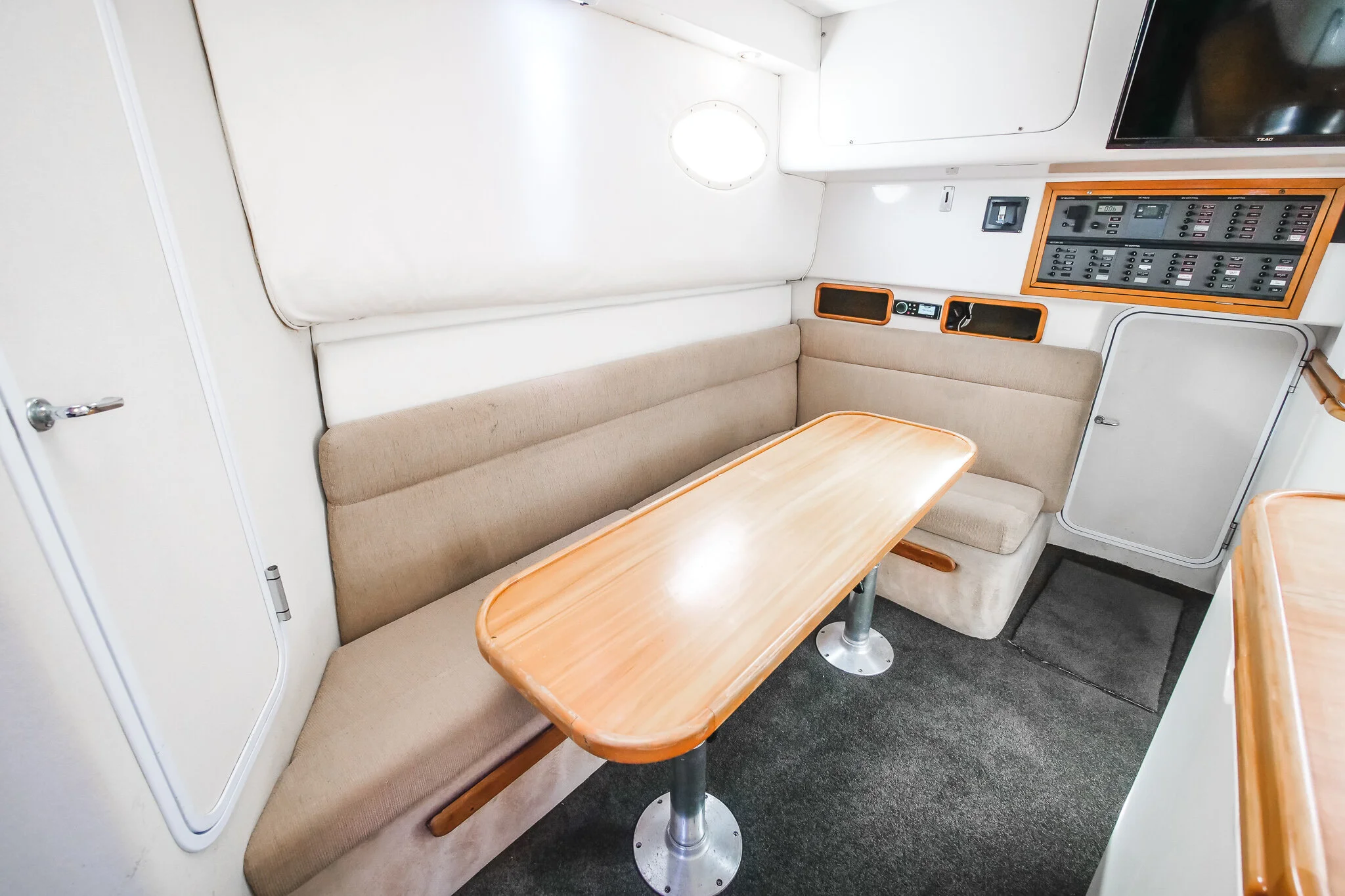 She is a fast efficient hull featuring a full walk-around layout and super social. We also know a lot of history on this vessel including its old captain Bonze himself who has caught a lot of fish off her.