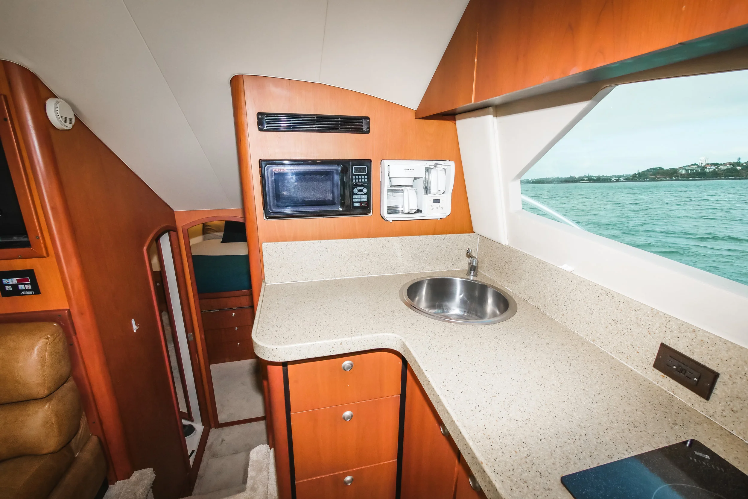All of that into a 12m berth? YES!! The Luhrs 36 is an extremely capable vessel that feels like you are on a much larger launch, with exceptional sea keeping abilities and a very dry ride from her Carolina style hull. If you are in the market for a Riviera or Bertram equivalent this would be hard to look past. Luhrs boats are beginning to gain a large market share in the New Zealand boating scene as they offer a great value proposition and are a well renowned vessel in the fishing and cruising scene. And this particular boat has come from experienced owners who have maintained and upgraded the boat to an excellent standard