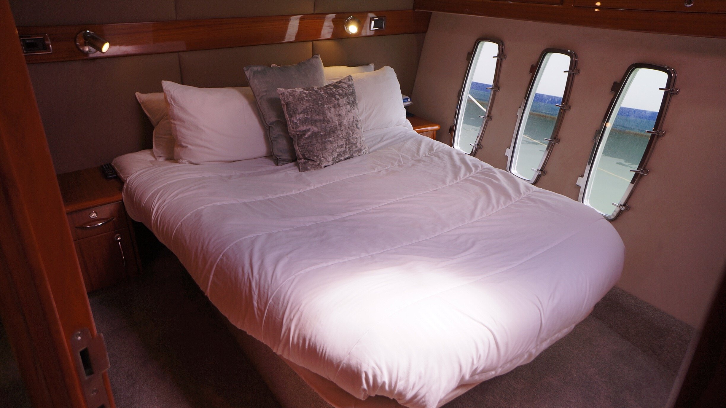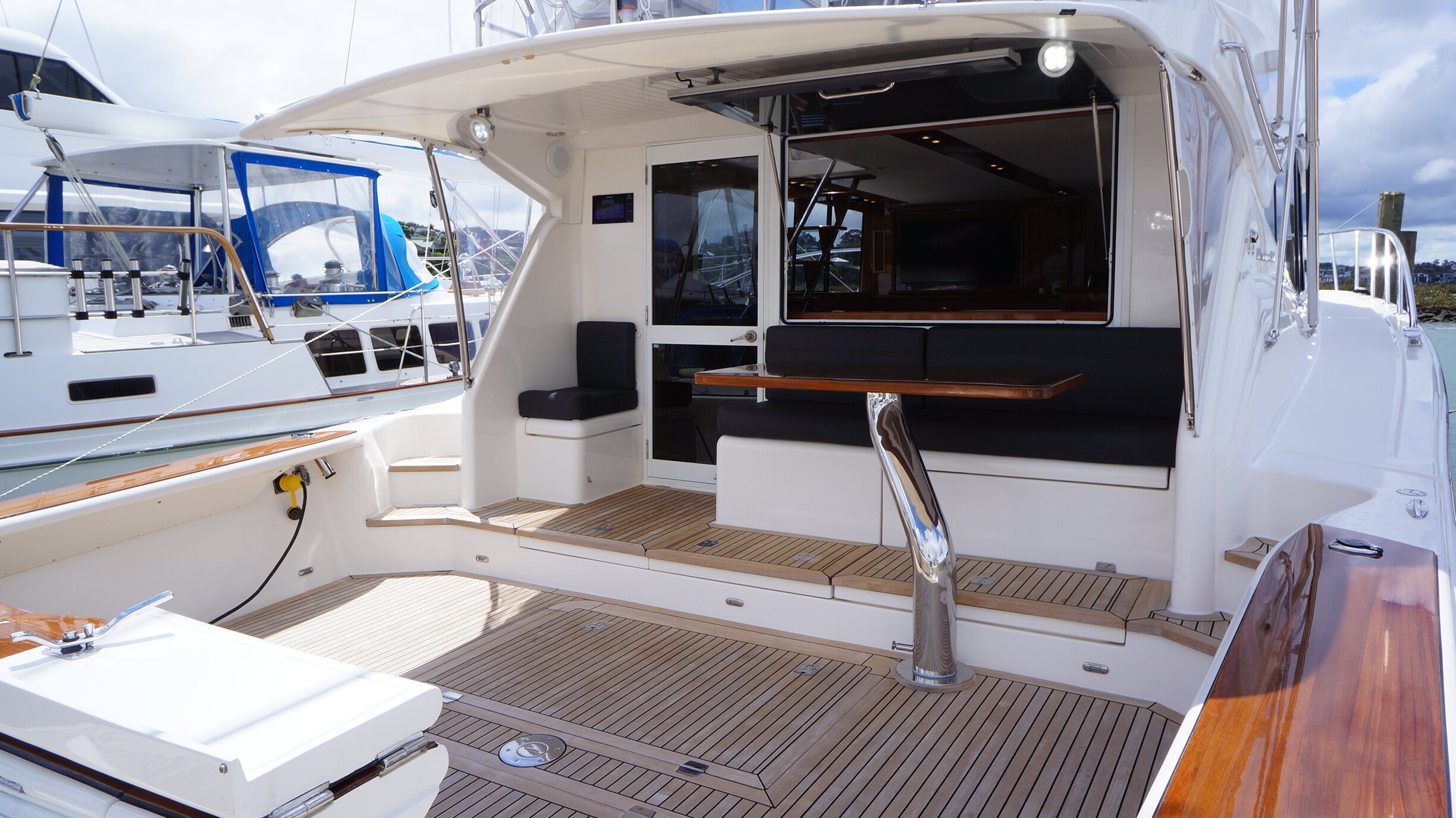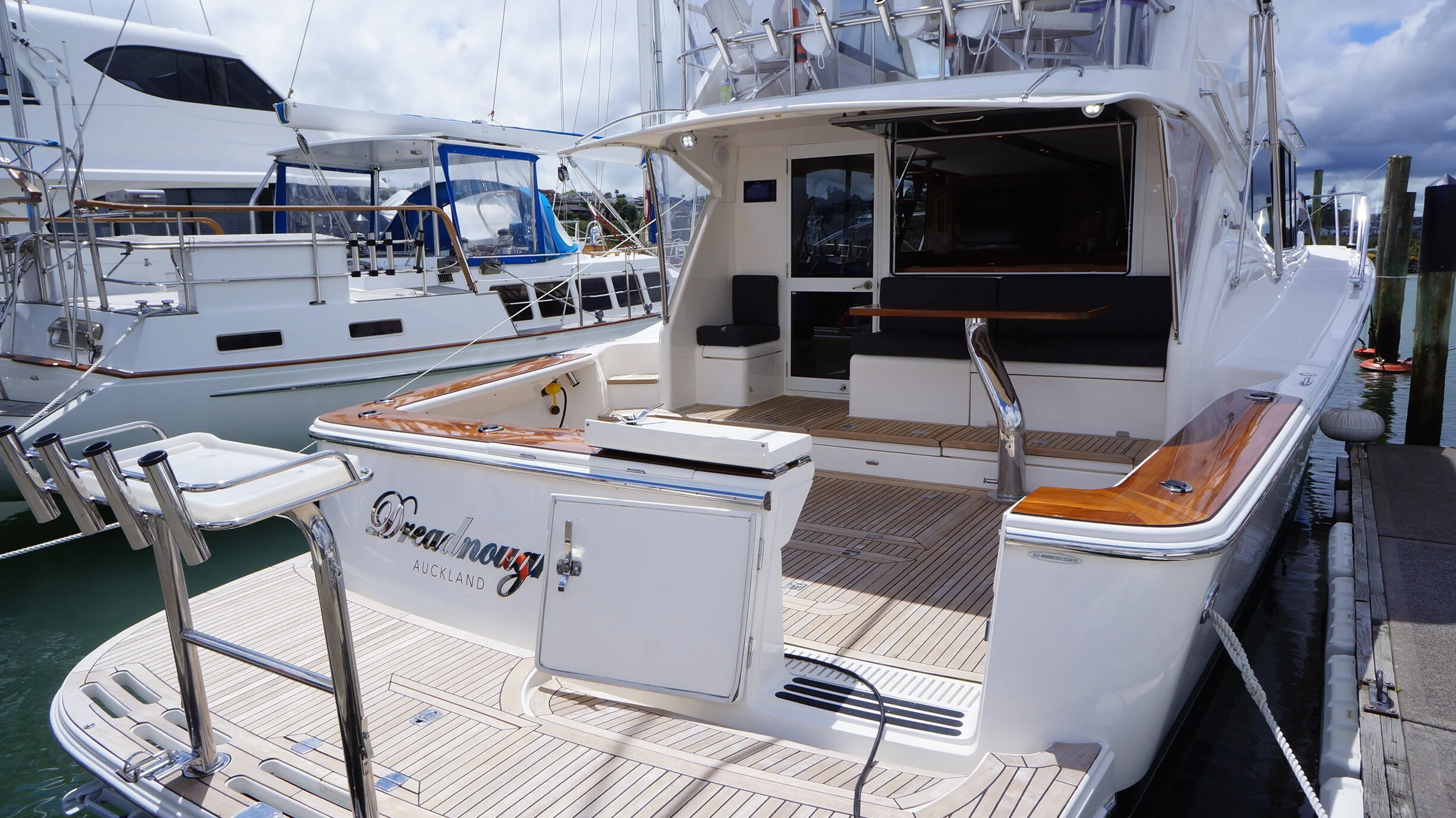 A rare opportunity to own a Maritimo 550 that has an extensive list of upgrades and features and presented in exceptional condition. Large spaces and an easy flow throughout the boat are one of the first things you will notice once onboard. She lends herself perfectly to sportsfishing and cruising alike with her generous cockpit and aft seating area and custom table. She also has the aft positioned helm station for viewing the cockpit whilst fishing and means all your guests are seated in front of you creating a very social flybridge