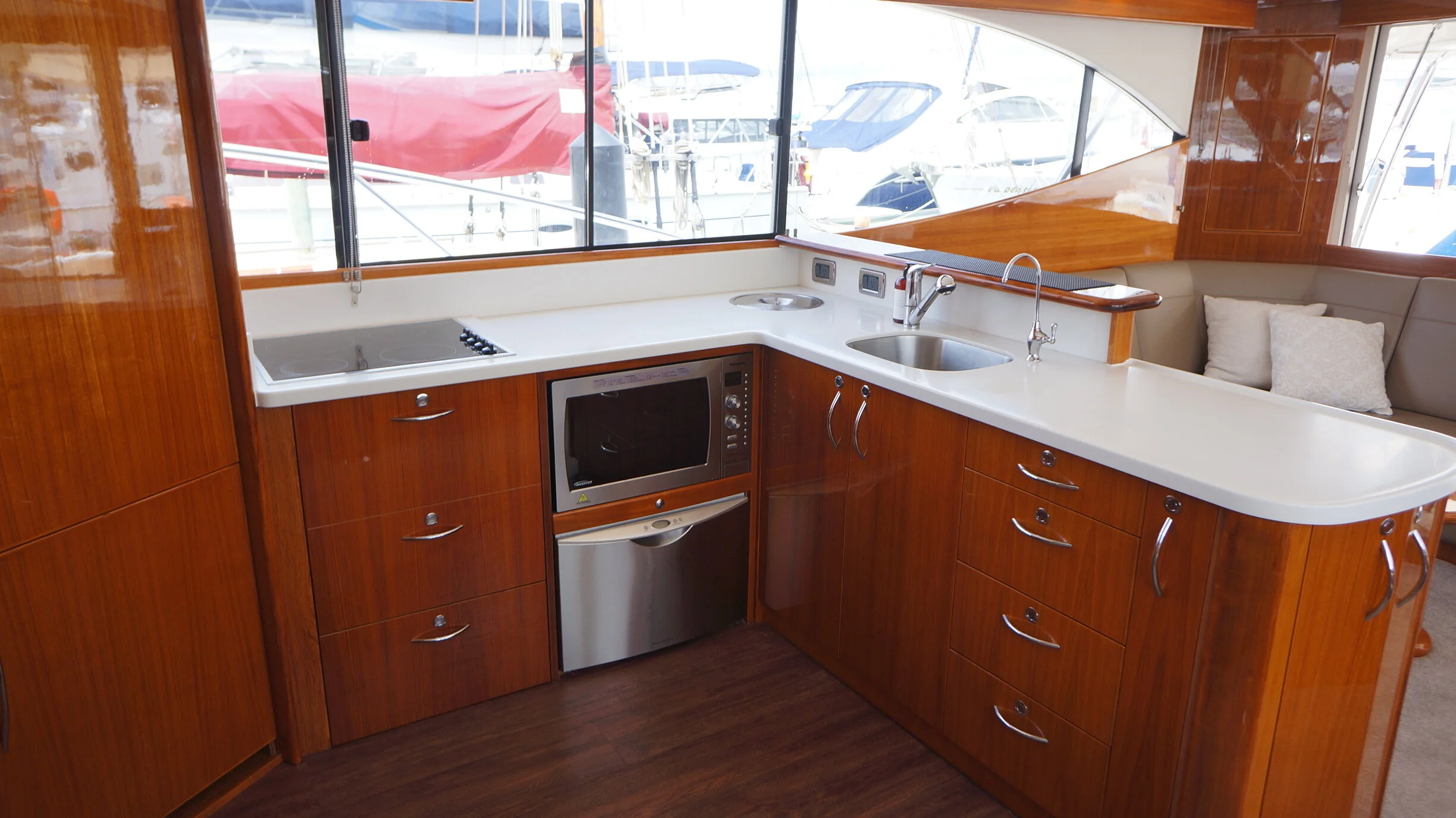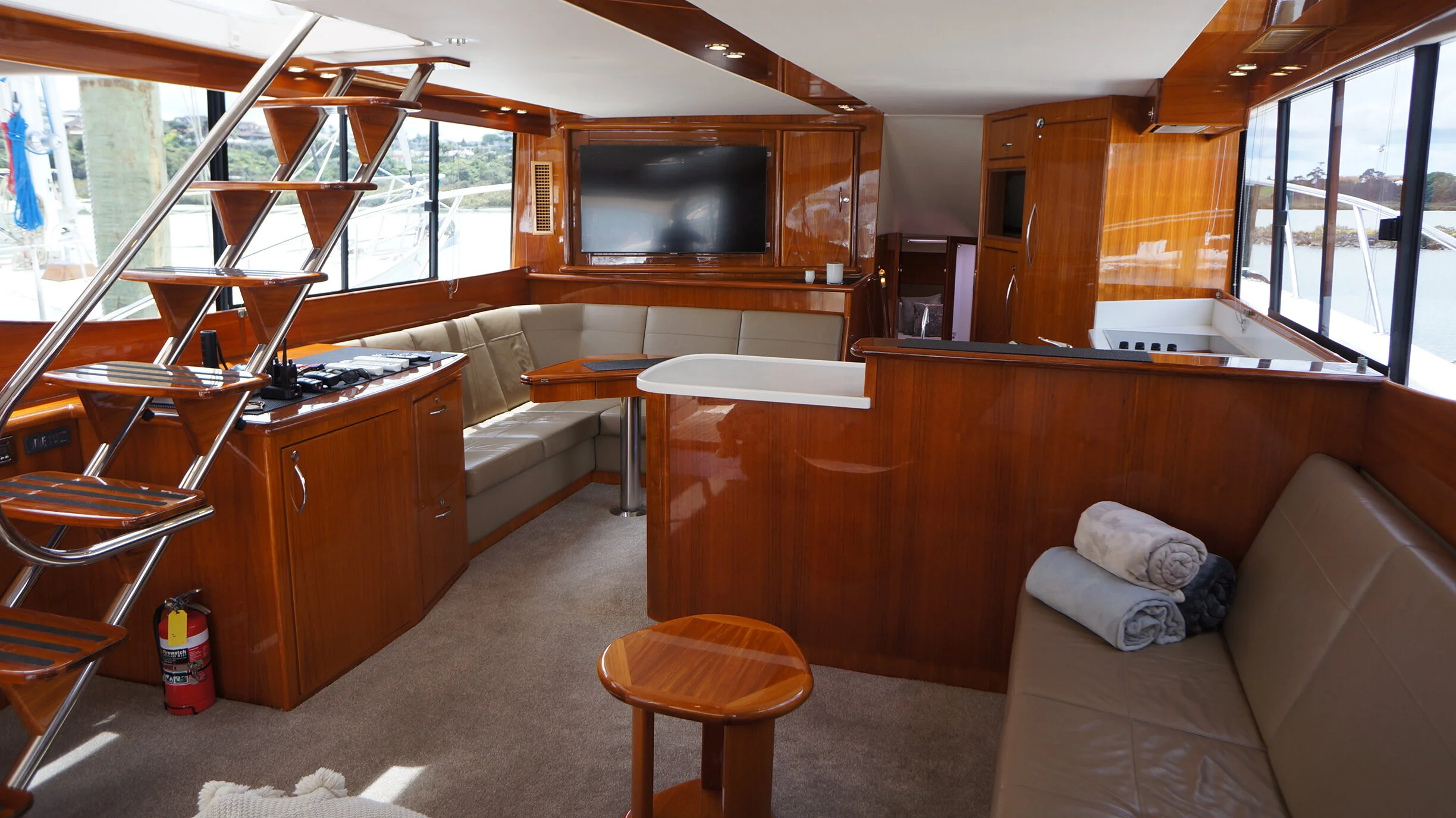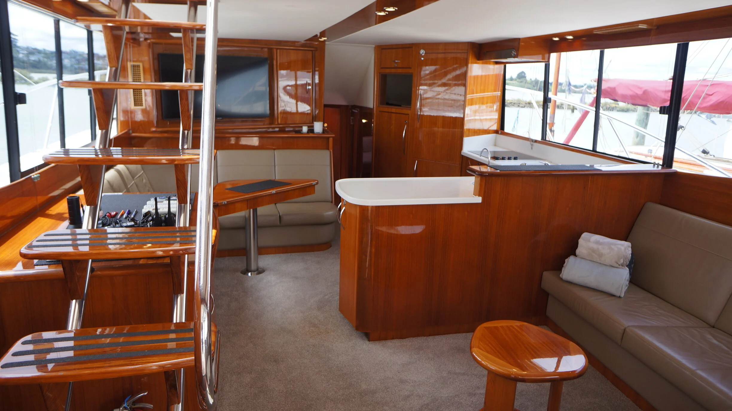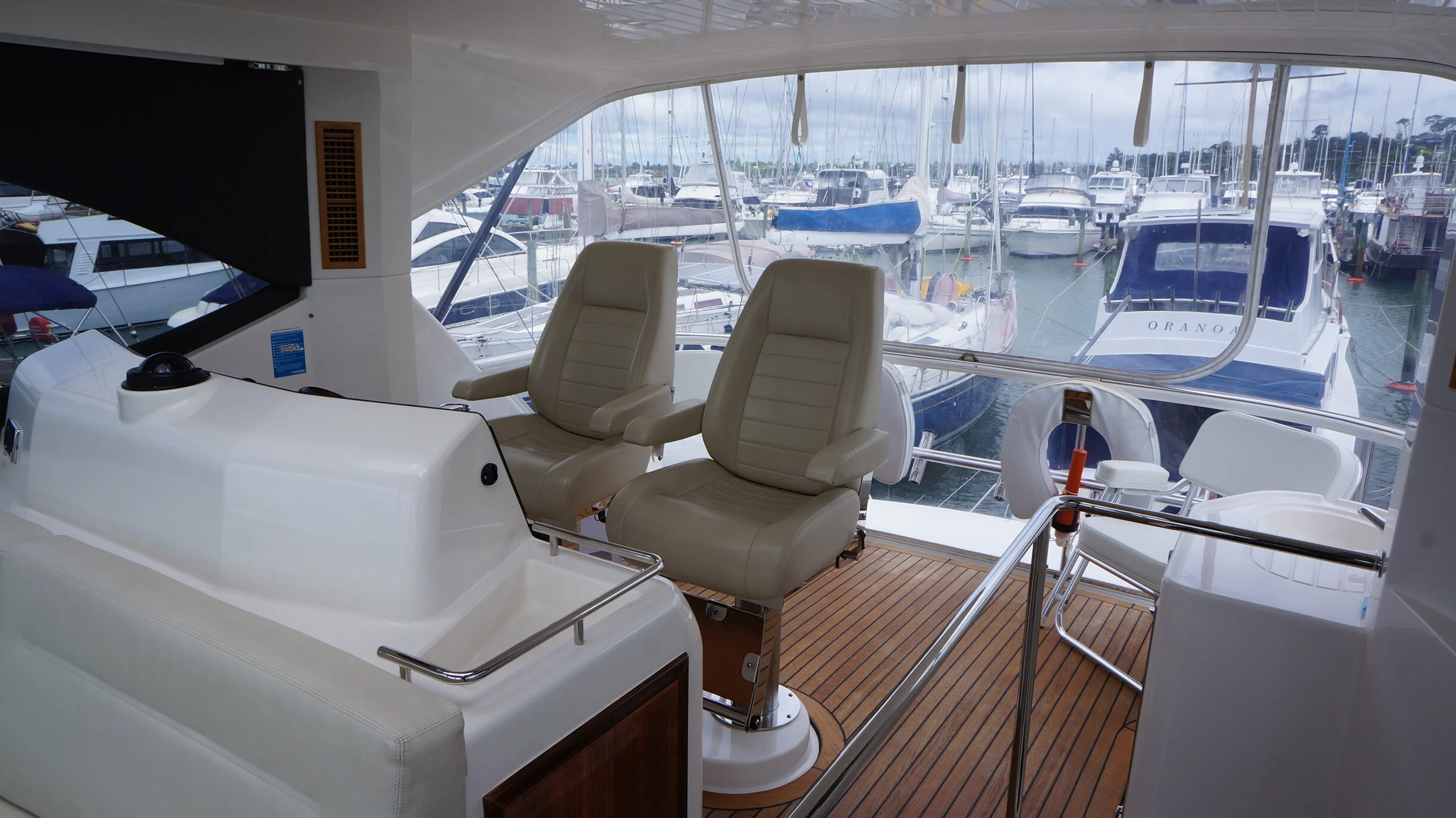 A rare opportunity to own a Maritimo 550 that has an extensive list of upgrades and features and presented in exceptional condition. Large spaces and an easy flow throughout the boat are one of the first things you will notice once onboard. She lends herself perfectly to sportsfishing and cruising alike with her generous cockpit and aft seating area and custom table. She also has the aft positioned helm station for viewing the cockpit whilst fishing and means all your guests are seated in front of you creating a very social flybridge