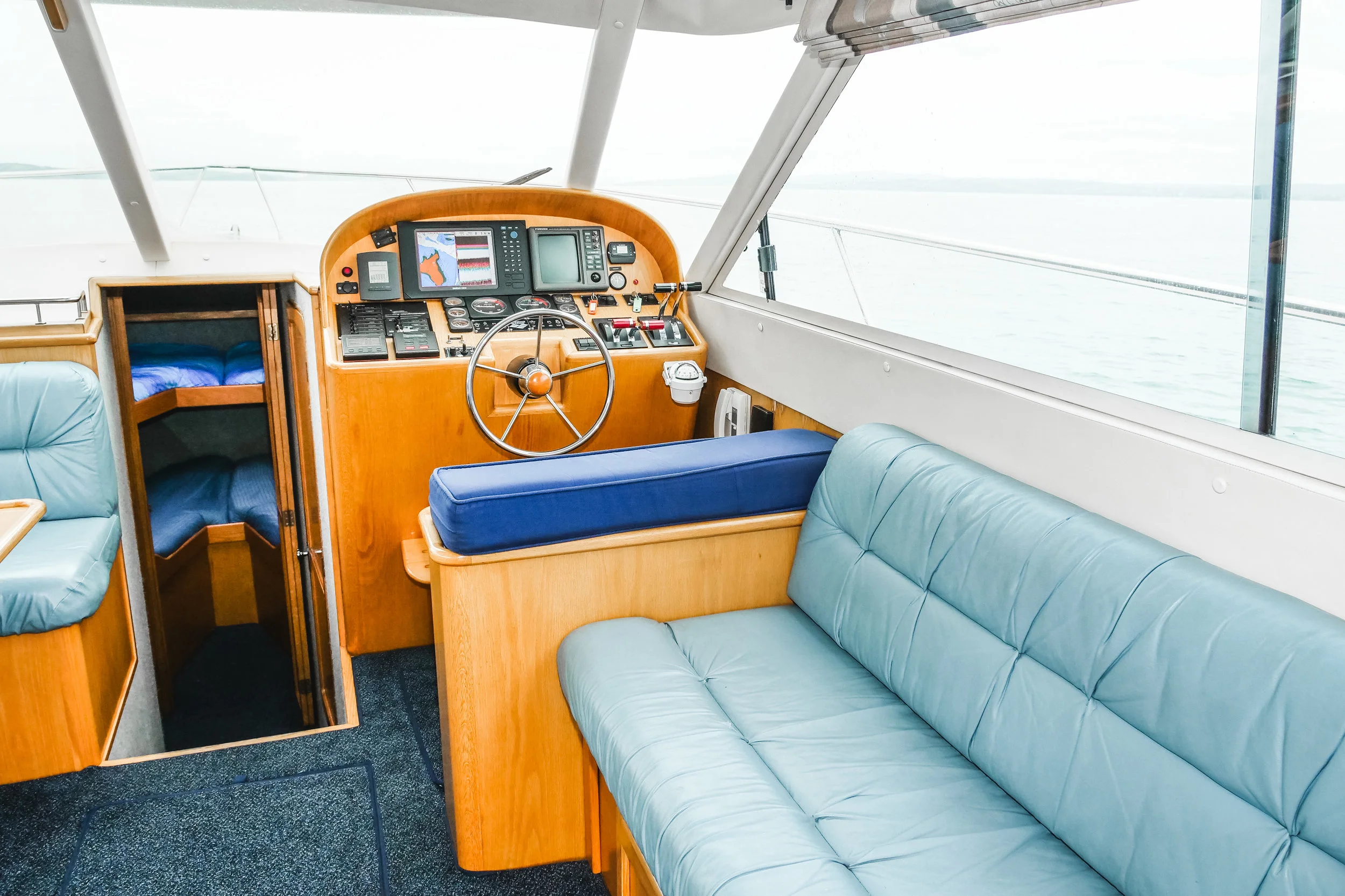 A very well renowned launch amongst the bays the Oliver 4000 has a lot to offer with bedding for six plus and the popular aft galley layout. She is a very efficient vessel with the twin Cummins 210HP and planes beautifully nice and flat along the water. We have sold many of the Oliver’s over the years and they all come with rave reviews from their past and present owners.